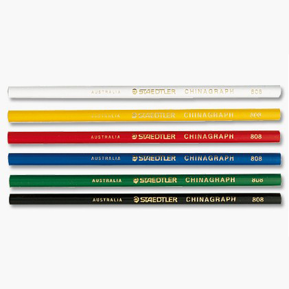 Waterproof wood-cased permanent marking pencil in 6 colours – Ideal for opaque drawing and writing on almost all surfaces even dark or transparent ones, e.g. paper, plastic, metal, glass, wood, leather and stone – No bleeding through paper – Wood from PEFC-certified, sustainably managed forests.12 Pencils per box.