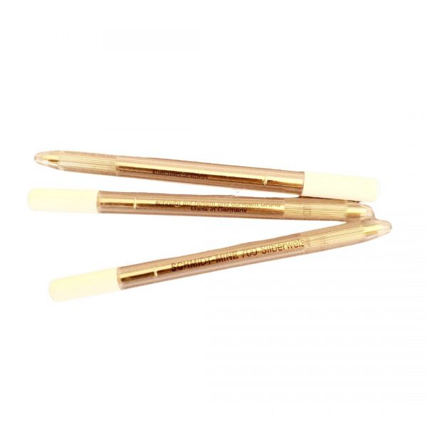 The Schmidt-Mine 700 silver-white refill is a 700 refill housed in threaded plastic tube which doubles as the pen casing. The refill contains a silver-white paste ink which writes on light and dark surfaces.